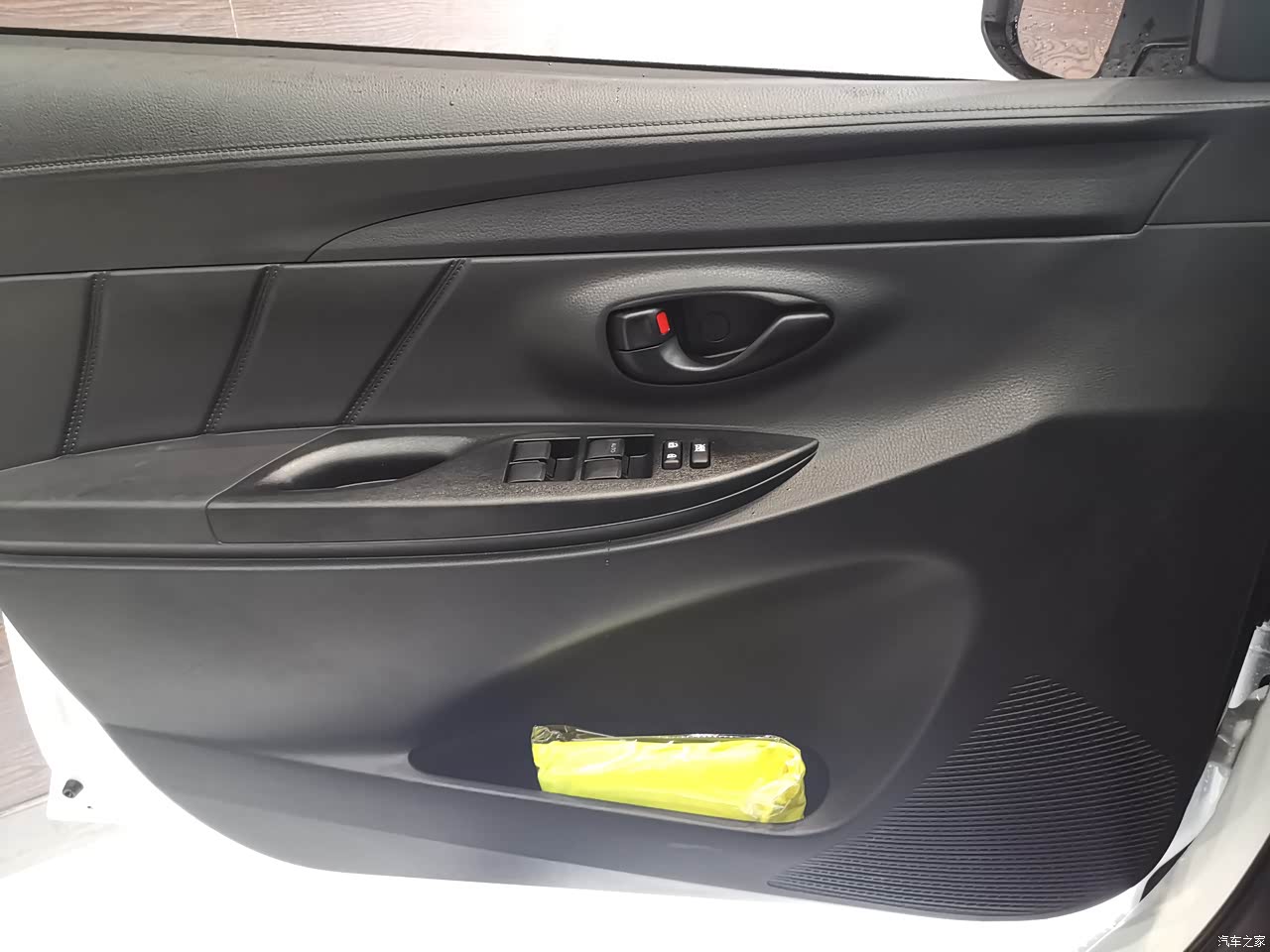 门板上的塑料做了车缝线的造型,不仔细看还以为是缝的皮子,有点掩耳盗铃的感觉;