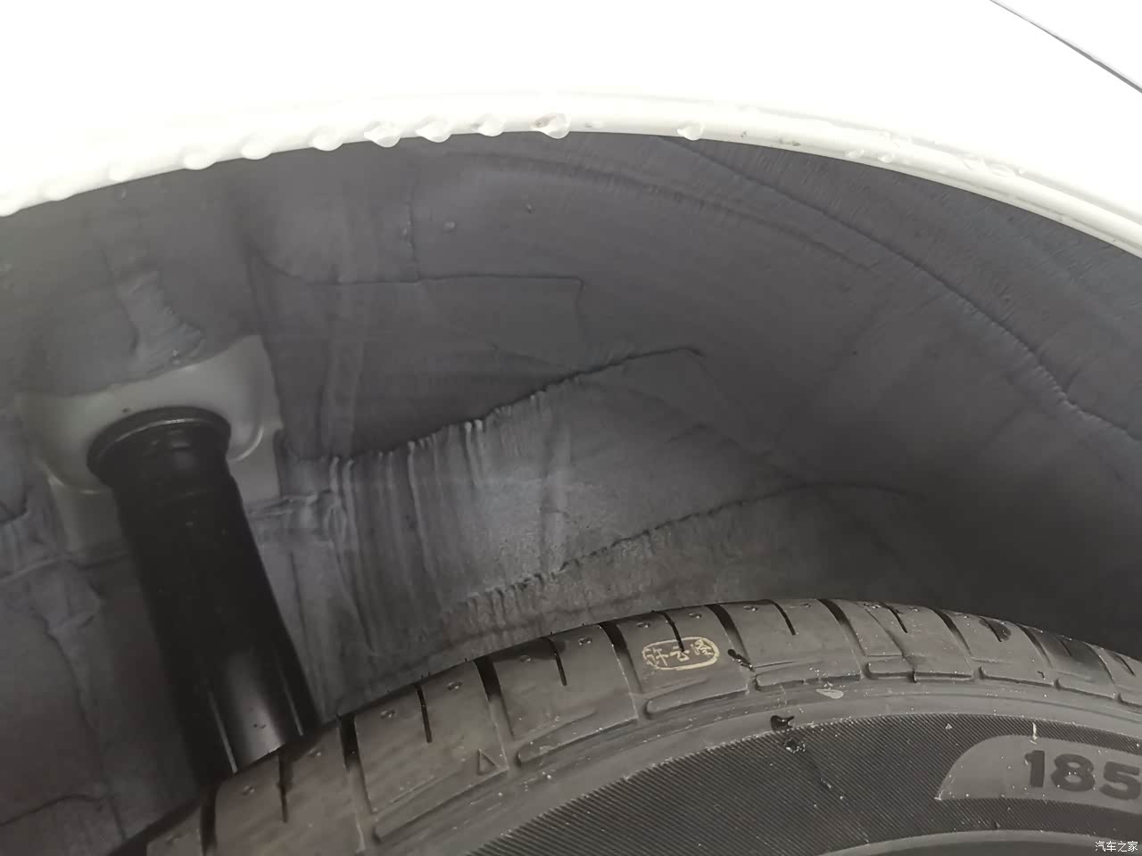 后面的这个轮胎缝隙可以看到是没有内衬板的,这个非独立悬架对操控还是有一定影响