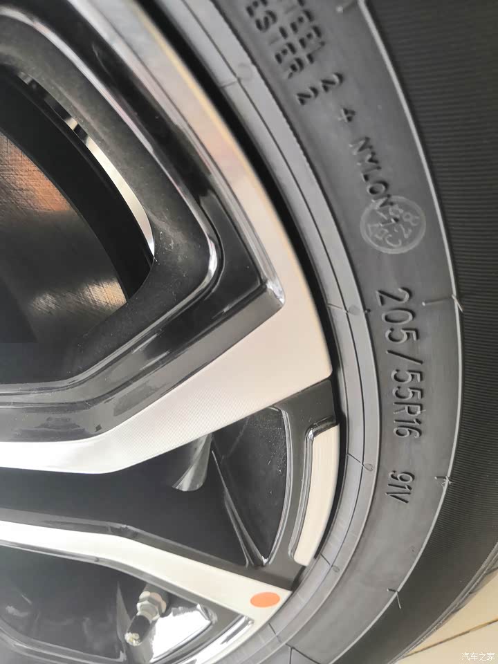 205,16寸的轮胎,还是镜面莲花型的,平常开起来胎噪比较小,轮胎里面还有胎压监测,真是好看又实用