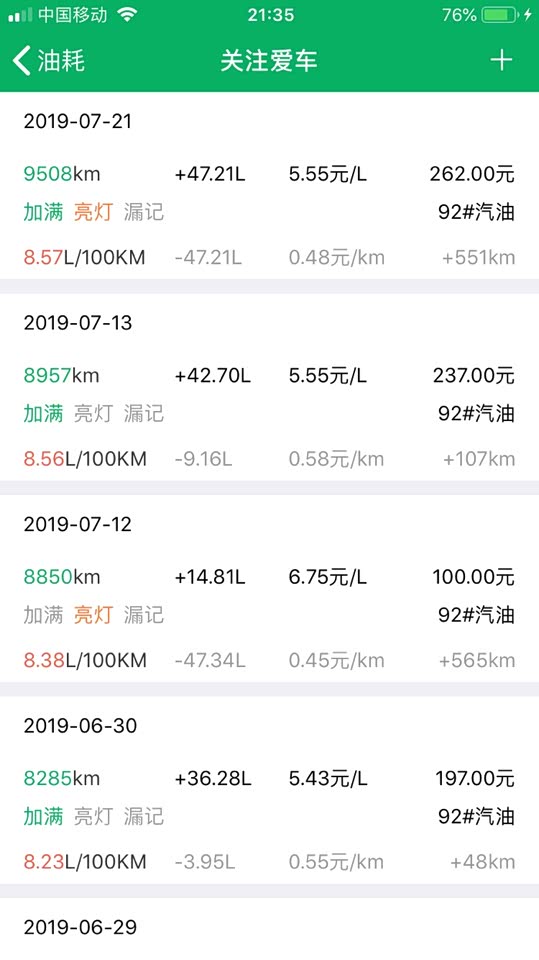 高速都在5个油左右。市区加高架,平均现在8.2个油。