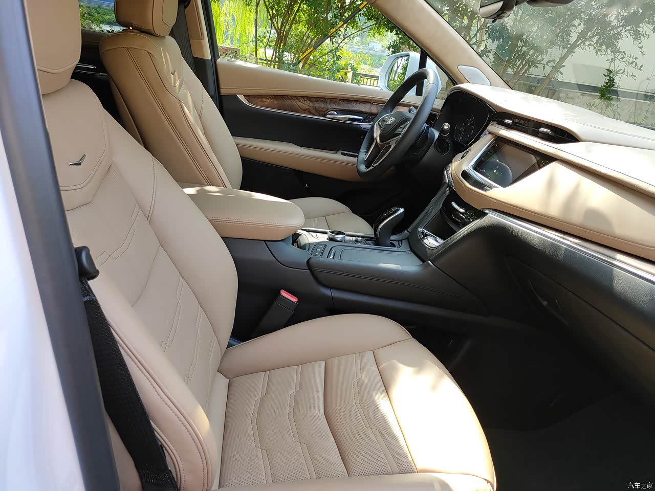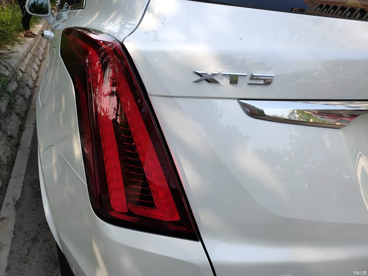 1、外观:一如既往的帅,就像自带发光体,在众多车中脱颖而出,一眼锁定。相较于老款XT5,个人感觉外观改变最大的就是前格栅,这个改变立刻提升了XT5的时尚感,美观!凯迪标志性大灯,闪闪的,钻石切割技术,辨识度极高。\n\n2、内饰:凯迪的内饰秉承了美式车的特点,简约大气,不过中控新添加了旋钮操控,使用起来更方便,可通过旋钮调整音量大小和选择。储物格设计也比较合理!\n\n3、舒适性:选车先考虑观感,然后最重要的就是舒适度了,真皮座椅柔软舒适,隔音效果好,主要是因为双层夹胶玻璃,还有主动降噪功能(因为以前的车噪音多少有些大,因此在换车时着重了解一下),现在来说很满意,XT5给家人一个静谧的空间,路途中可以安静的聊聊天,听听音乐,喜欢这样的出游。\n\n4、操控:易操控,有简易刹车,即在等红绿灯或上坡时,踩一下刹车后,车就停止前进,不需要一直踩在刹车上,这一点能轻松好多。同时,新款XT5有自动启停关闭键,我一直不是很中意自动启停功能,之前试驾老款XT5的时候,没有自动启停关闭键,犹豫过,现在好了,可以自主选择自动启停功能,不失为良心设计。\n\n5、动力:观感、体感都很满意了,动力当然也是重点考察的。起步轻盈,加速快,加速后推背感强,爱人坐在副驾驶不敢睁眼(大笑),当然了,这只是在空旷的路上体验一下,确实给力,超车轻松!日常还是要注意行驶速度的!毕竟安全最重要!\n\n6、性能:全新2.0T可变缸涡轮增压发动机,全系标配9速手自一体变速箱,适合多种路况,可以满足家庭用车需要。