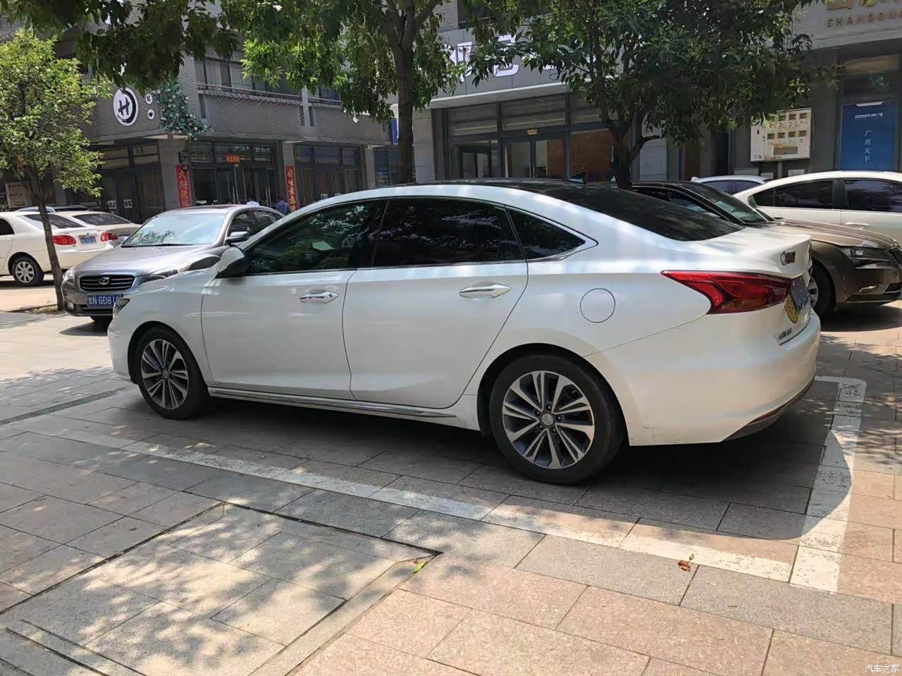 我身高1.76,前排座椅按照我的身高调好以后坐在后排腿部空间还有2拳距离,头部空间也很充裕,非常宽尚。 储物空间也不错,四个门衬板上面都有很大的存放水杯和杂物的空间,手扶箱空间也不错,点烟器位置还有存放手机的位置。