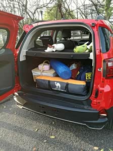 后备箱就不是很大了,随便放的东西就堆满了,但是高度和开启方式来说,挺好用的。