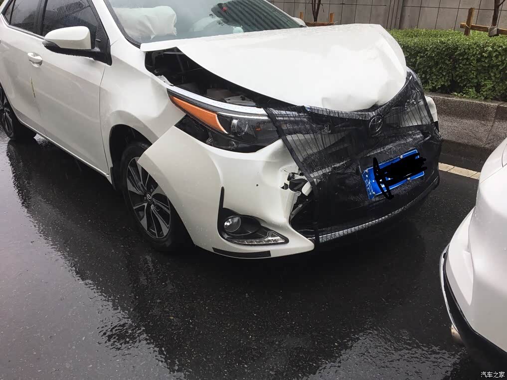 前机盖变形,前脸全废(前面是外置防柳絮的罩子,请无视)