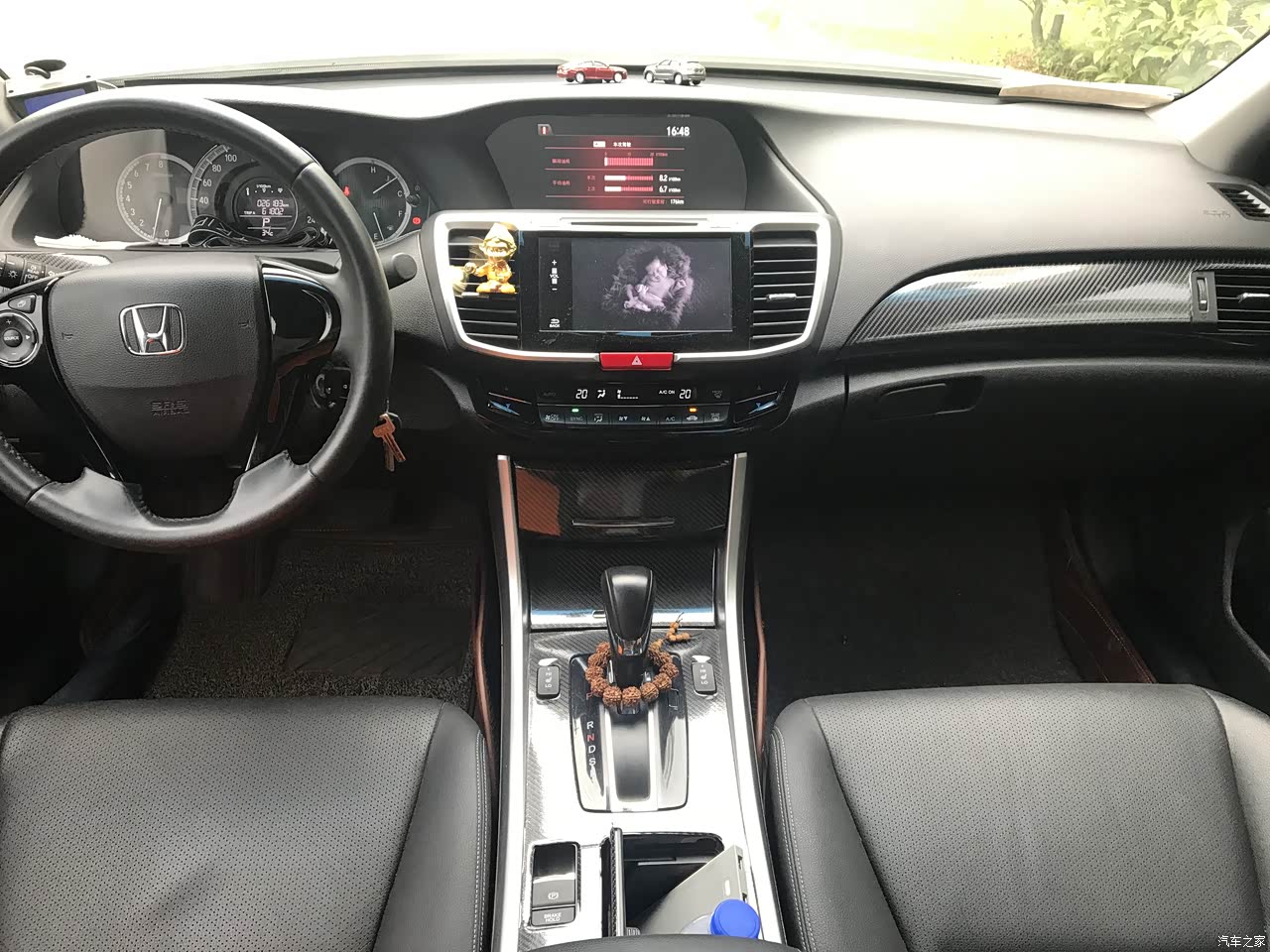 雅阁内饰是我比较不满意的一个点。中控设计按键复杂,所以自己换了个屏幕,更显科技操作方便。内饰的材质也有一种劣质的感觉,自己买了5D炭纤维的纸贴了一下,自己感觉漂亮很多。