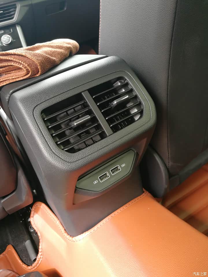 后空调出风口这点也是很好的,同级车也有很多都没有,宝来后出风口还带USB接口,对后排乘坐的人来说是很舒适很人性化的。