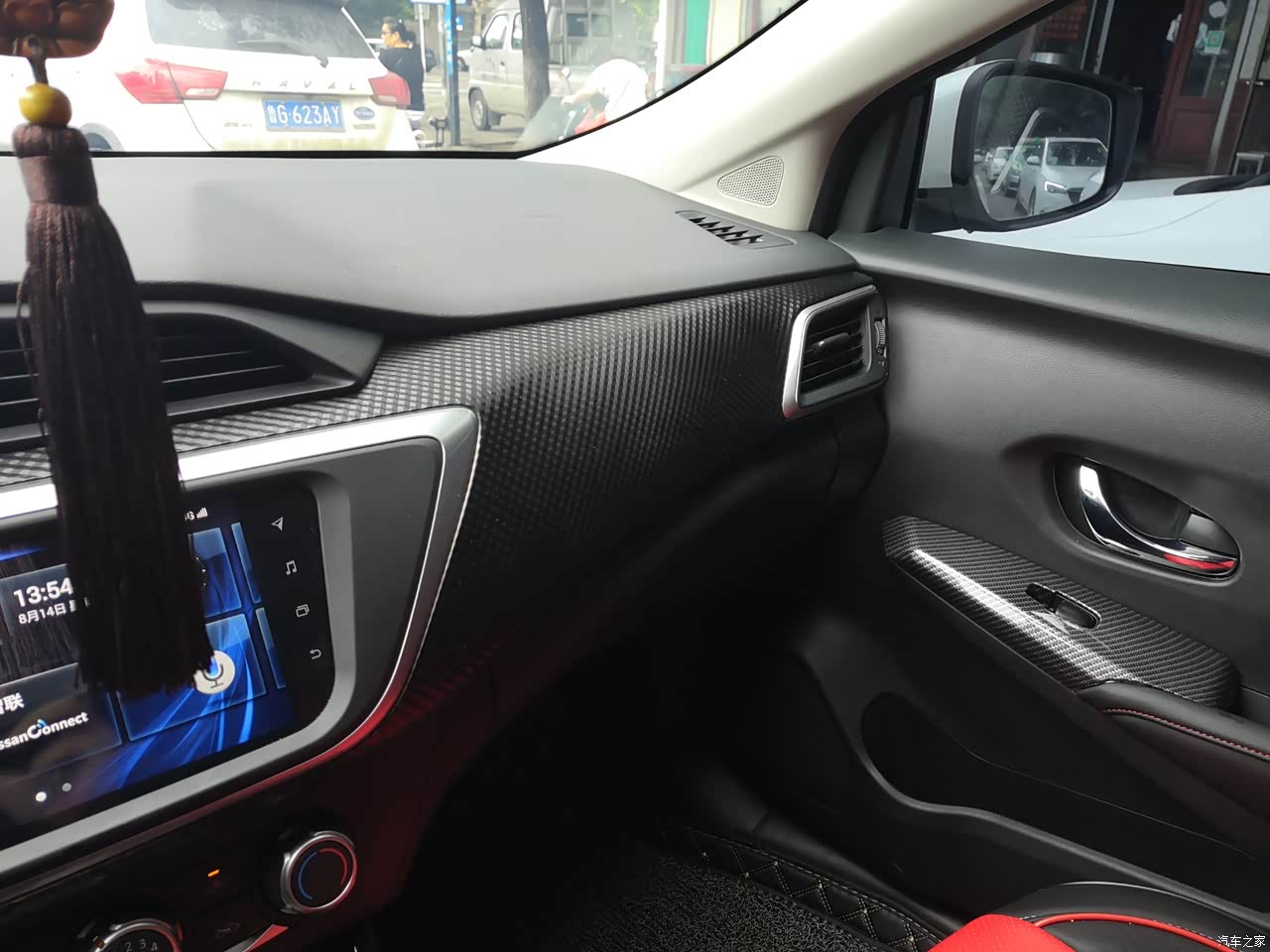原车碳纤维漂亮。(玻璃开关上是某宝自己76元改的)门板太硬了,以后准备自己软包