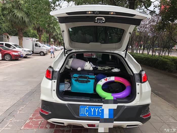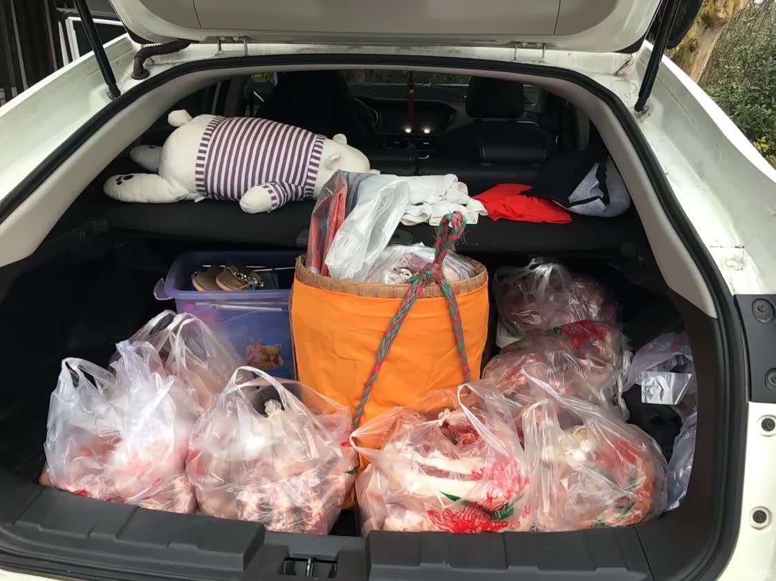 后备箱虽然不深,但是很宽敞,而且后排座椅可以放倒,放倒以后空间那叫一个大呀。后备箱是两层的,可以根据自己的需求摆放。两层合在一起的话,就是特平的一个大空间。如果拿一层放上去,就是我现在这个效果了