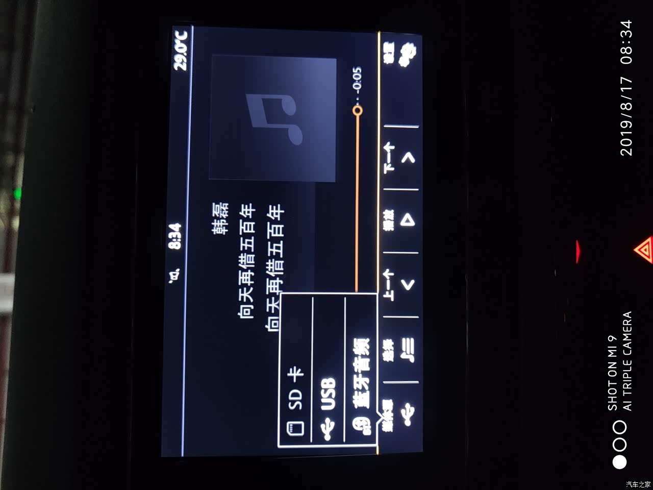 如图,音源显示SD,试过了,完全可以用,这样就不用抢手机的USB插口了。