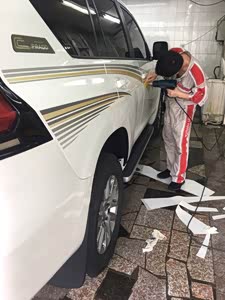 贴上拉花,霸气多了,不喜欢大白胖子,所以一提车就马上上牌贴拉花…