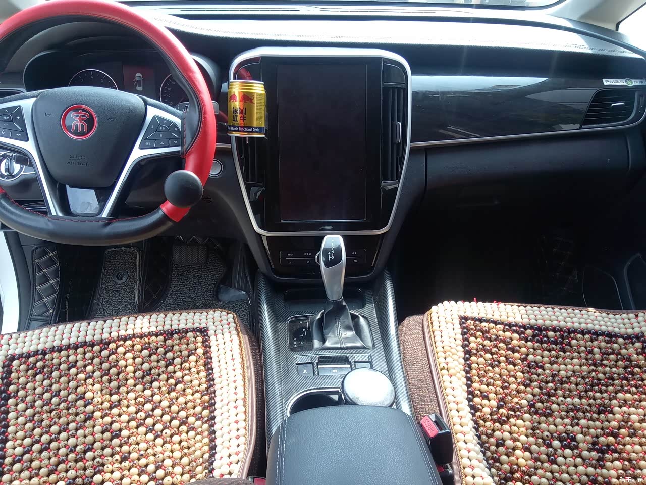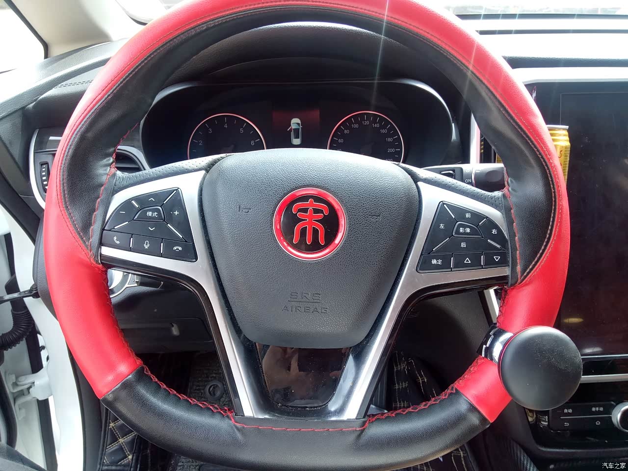 红色方向盘套,很有运动范。