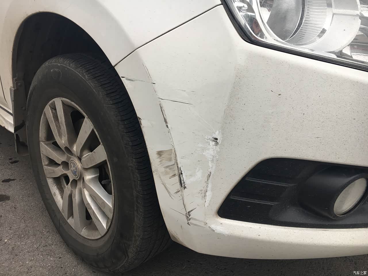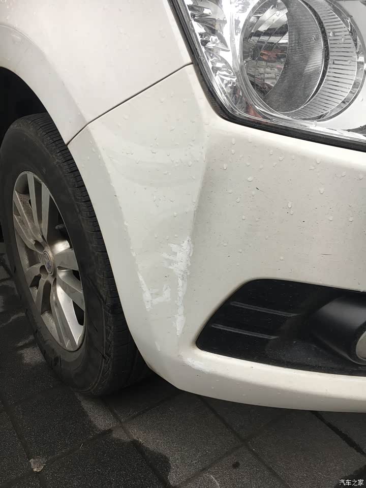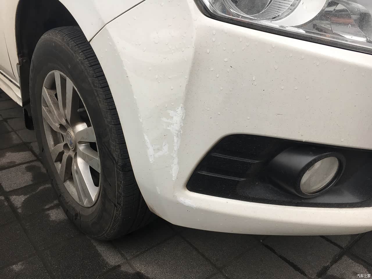 之前左前保险杠被擦挂了,自己用补漆笔补了一下,但毕竟只是一只10块钱的补漆笔,效果不敢恭维,存在明显的色差。结果没补多久,左前保险杠又被挂花了,竹篮打水一场空啊。