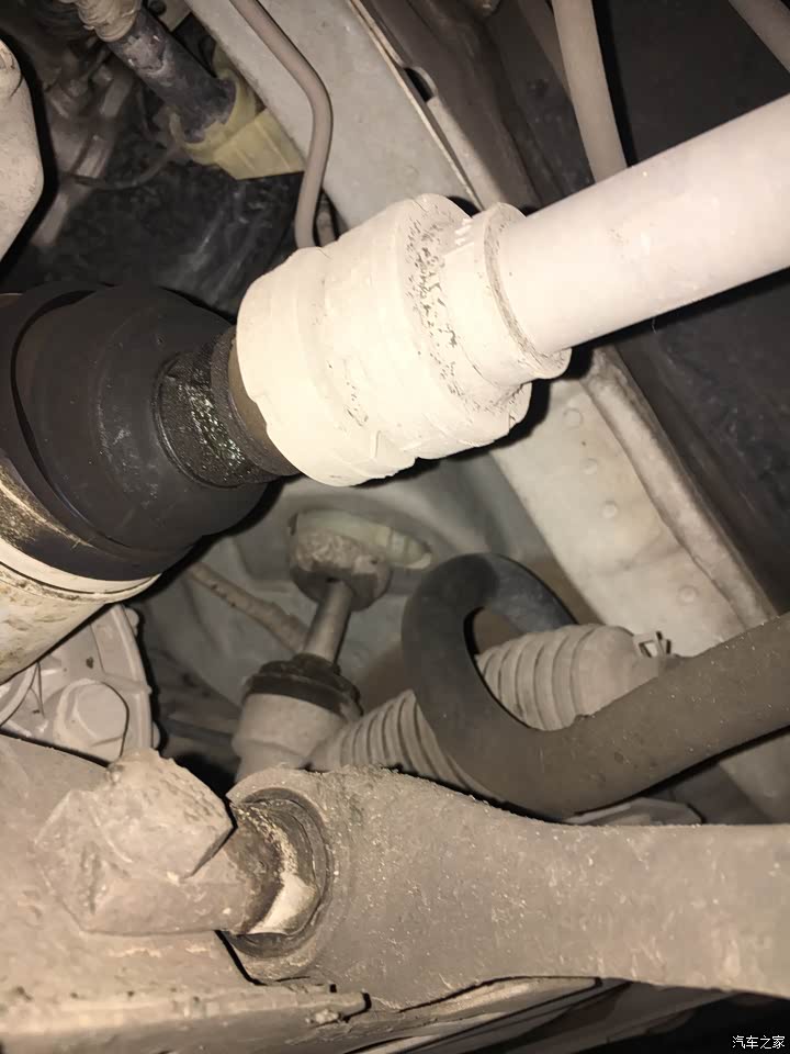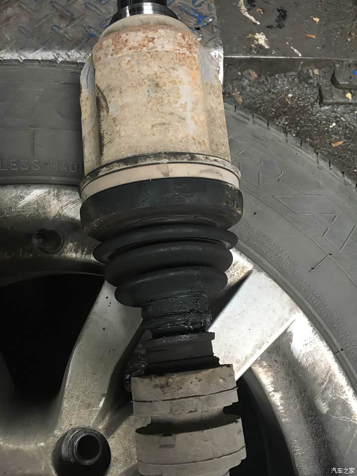 这次中秋节常规检查发现左前半轴防尘套疑似漏油,由于在平时行驶中并未听到任何异响,所以压根就不知道半轴出了状况,虽然防尘套有润湿的现象,但并未有油滴下来,所以不排除是润滑脂融化。
