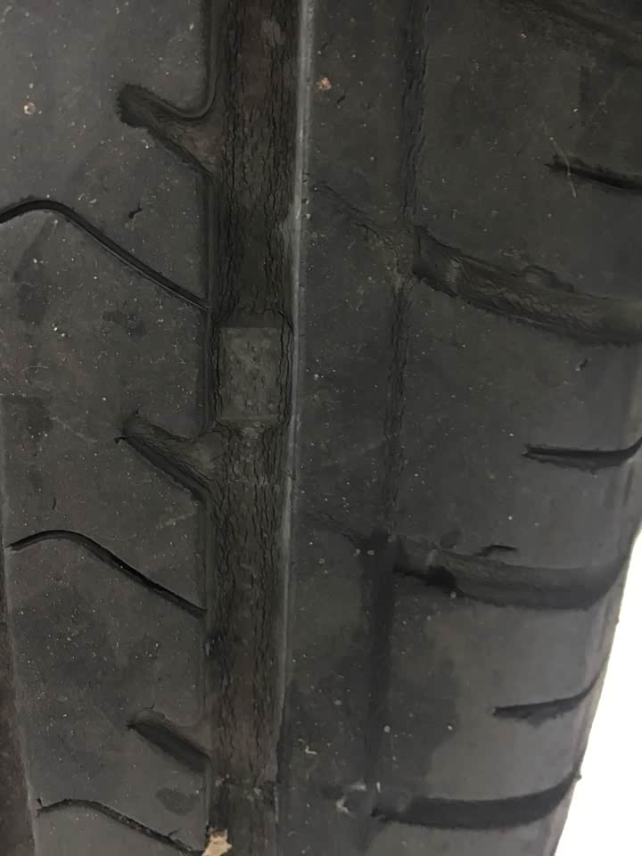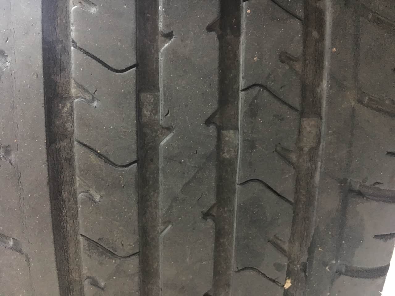 这次检查除了发现左前半轴防尘套有疑似漏油外,还发现轮胎也快不行了,这四条胎都是原厂的,买车至今没换过,7万多公里的长途奔波,3年多的风吹日晒,已经快磨到磨损标记线了,并且橡胶也因为老化而有裂纹产生,看来8万公里的大保养着实要出点血了。