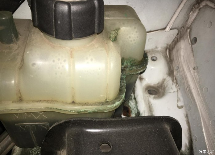 一直以来都发现冷却液消耗的很快,但之前一直没找到原因,这次冷却液又快没了,添加冷却液时才偶然发现冷却液有渗漏,漏点在冷却液壶上下两部分的连接处。我自己也百思不得其解,为什么启辰T70的冷却液壶不采用一体成型,而非要做成上下两半边然后粘连在一起,从而导致冷却液顺理成章的从连接处渗漏出来。
