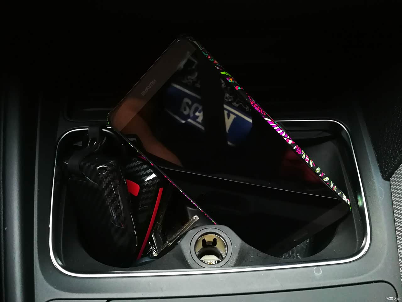 内饰选的是红色,很帅,很时尚。晚上橙色氛围灯照耀,很是动感。酒红色的内饰配上仿碳纤维,很时尚,不打算改造了。但是对于完美主义者,仪表盘下部的电子显示区域不是对称的,让我看着就非常纠结。