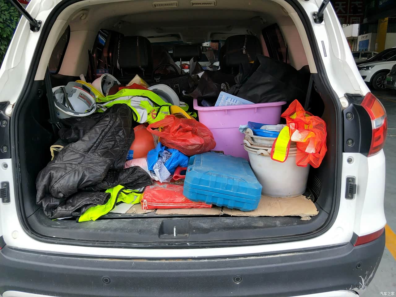 第三排就当后备箱用,把我们几个工友的工具放进去,可以放很多,工具箱、桶、盆安全帽反光衣等等各种扔进去,刚开始的时候还舍不得把新车装这些东西,后面慢慢的东西越来越多,也就无所谓了,反正车子买来就是要来用的。