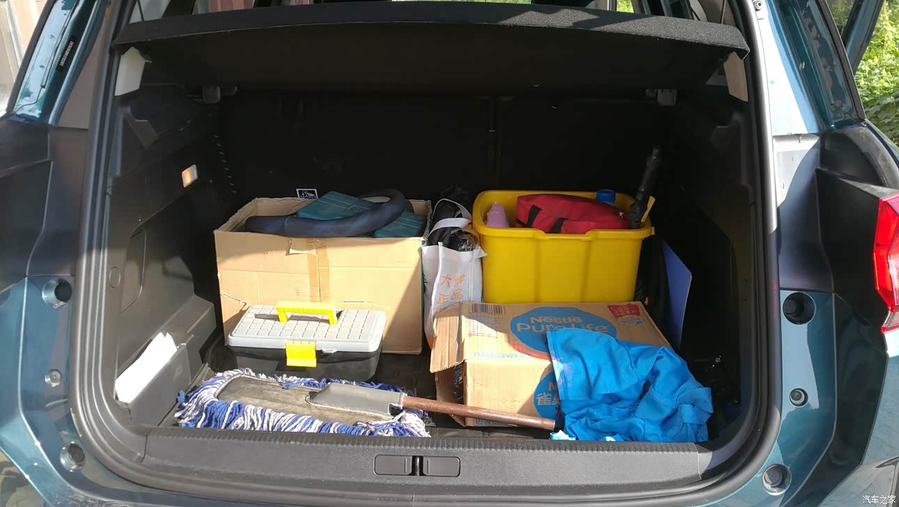 后备箱空间,两个大盒子,一箱水,还有很大空间