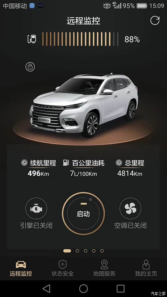 奇瑞系汽车现在都有智云互联,通过手机软件了解和启用车的功能,这个功能我在之前买的瑞虎5X都感受过,不过星途的智云互联功能更多。目前行驶4千多公里,综合油耗7L百公里,这个油耗相当满意。5千公里进站保养后,相信油耗还会更客观。