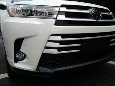 汉兰达的外观我个人觉得没有什么特别值得夸耀的地方,整个设计都比较中规老实,这个就是所谓的稳重吧,不像运动车型那么动感,车顶上的两个行李架,设计还是不错,算一个出彩的地方吧。银色的设计,有那么一点点的感觉。而且这个行李架不是镂空设计,是实心的,跑起来,不会有很大的风噪。