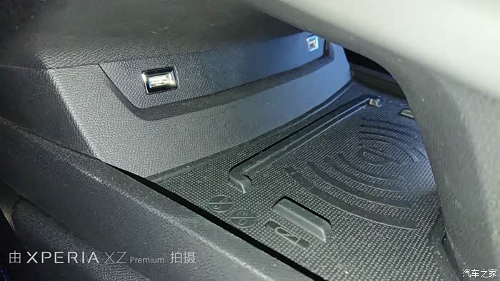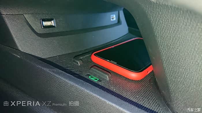 中控台下掏空做了一个小平台,给手机无线充电以及预留的2个USB接口(充电或者手机互联)。虽然很隐秘,但却很巧妙。