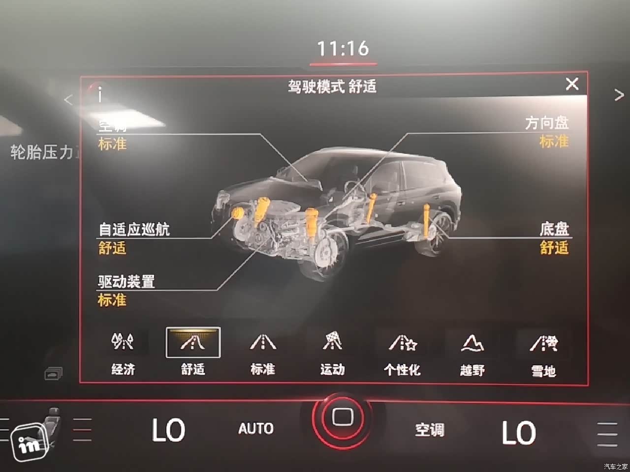 空气悬架销售顾问说最低最高相差11公分的距离,试驾的时候给我演示了一下,确实调高了不少