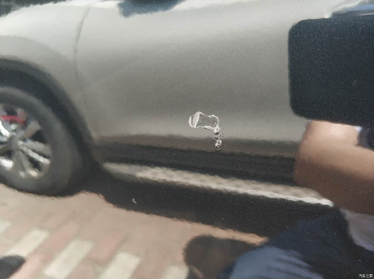 车门上的银色边,喷漆也不结实,沾上了水印,用力擦了几下,就出划痕了。