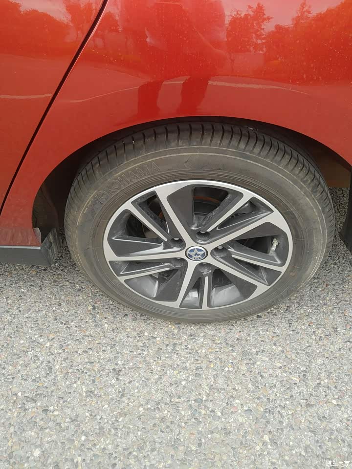 轮毂是双色的铝合金轮毂,跑起来很好看,赞一个!