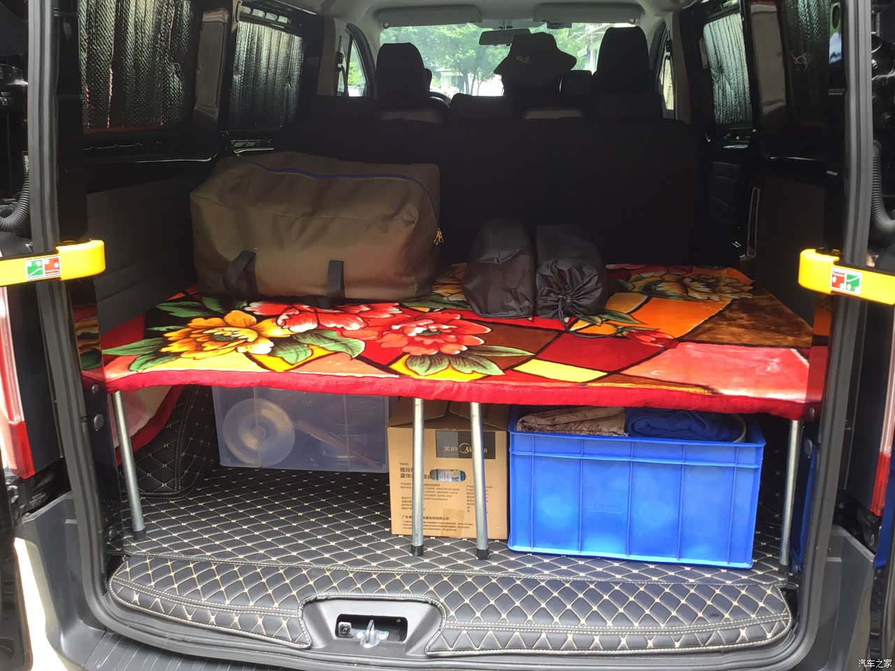 矮个子可以:前排座加支撑,后排座过道,后备箱架高过轮拱都成舒适的床。高个子可以:唯有后排座椅折叠或前倾,床脚高过椅背,勉强爬进去了。后备箱床下放置整理箱,后排座椅空档和后备箱方便放置自行车(折叠更好),在城市里游玩可以选择骑行。生活物品配置整理箱存取不受限制。散件打包或加货物固紧绷带扣地板的锚勾上。