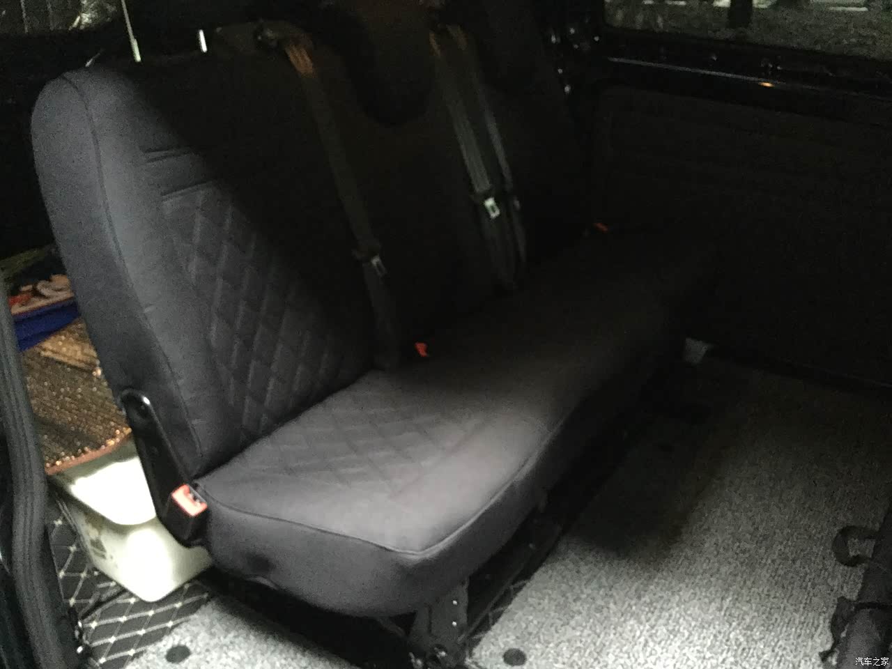 前排和后排座位宽敞,但由于安全带卡扣的影响,并不适合驻车时直接横躺休息(卡扣磕着)。前排三座椅,车内从前排进入后排,很不便。后排座椅宽约1.4米,从中门进入后备箱也不顺畅。
