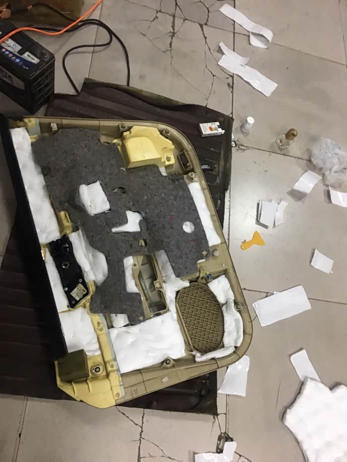 加装隔音棉,自己裁的!