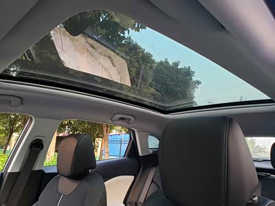 好似来自未来的车身造型,跟概念车一样一样的。尤其是搭配了内饰,中控那一块还稍微强一点,没有那么抢眼。但是仪表盘,白色的门板,棱角的门板造型和中控台棱角分明和车门板贴合的地方,未来感很强,跟我看的很多概念车的内饰很像,所以当时真的是被内饰惊艳到吸引。座椅的造型和色彩搭配也是运动感十足,配上全景大天窗,虽然不能够打开,但是透光性特别的强,比能打开的天窗要看起来更高级,更好看。因为中间没有黑色的隔断条,整个就是一块透明的大玻璃,在车顶看,还是黑哑光色,让车子更加运动。