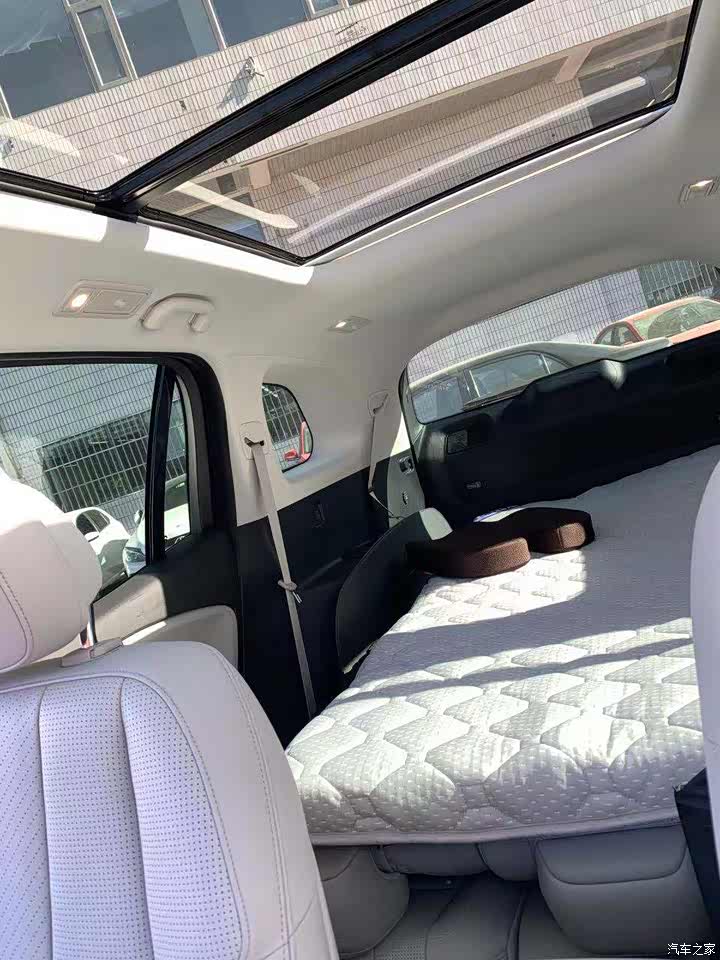车内空间 简直可以用嚣张来形容,之前做过 Q7 路虎揽胜 特斯拉modelX 跟蔚来 真的没法比,,腿部空间太大了,后排放平,可以当床