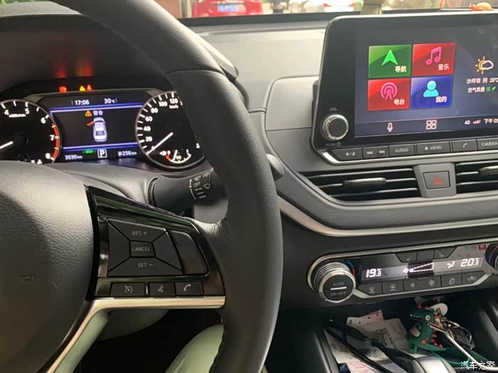 天籁内饰其实比较简单,不过用起来也很方便,我觉得这样反而更安全,因为之前坐大巴看到师傅边开车边触屏控制空调,但一直没调好,我心里都捏了一把冷汗。对我来说用得到的方便操作就行。内饰材质方面还是想吐槽下的,不喜欢塑料感。智联屏可以在线导航,实用,只是反应有些慢。