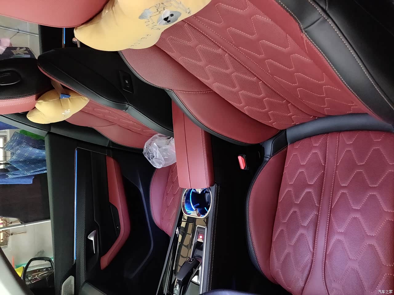 内饰也很漂亮,用料扎实,红黑搭配很有情调