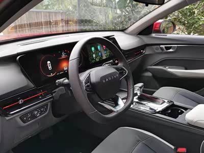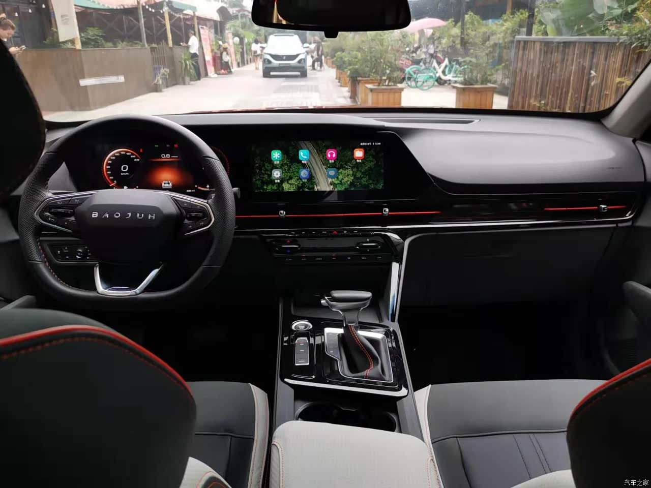 座椅采用的是双色搭配,也包括门板区域,所以给人感觉还是很不错的,中控大屏与液晶仪表盘双屏连在一起,都是12.3寸,看起来非常有科技感,而且清晰度和流畅度方面都很好,里面内容也不少。多功能方向盘平底设计,彰显运动化,车里面最明显的还是一条红线,在空调出风口区域,档把的设计也是符合当下流行的设计,手感很不错,一键启动就在档把左前方。