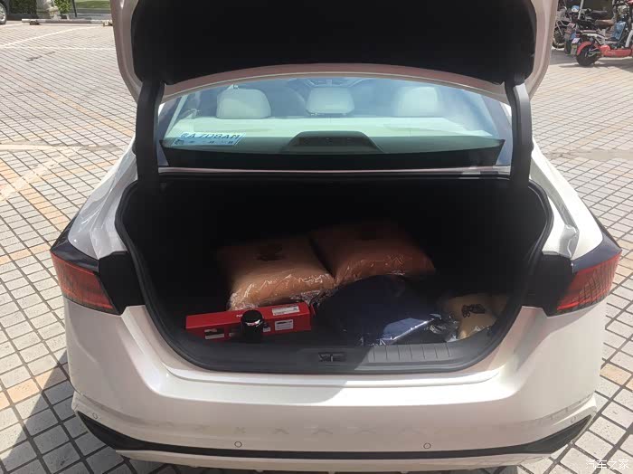 后备箱也大,虽然不能放倒是有点缺失,但好在有个洞洞可以从后排向后备箱拿东西。