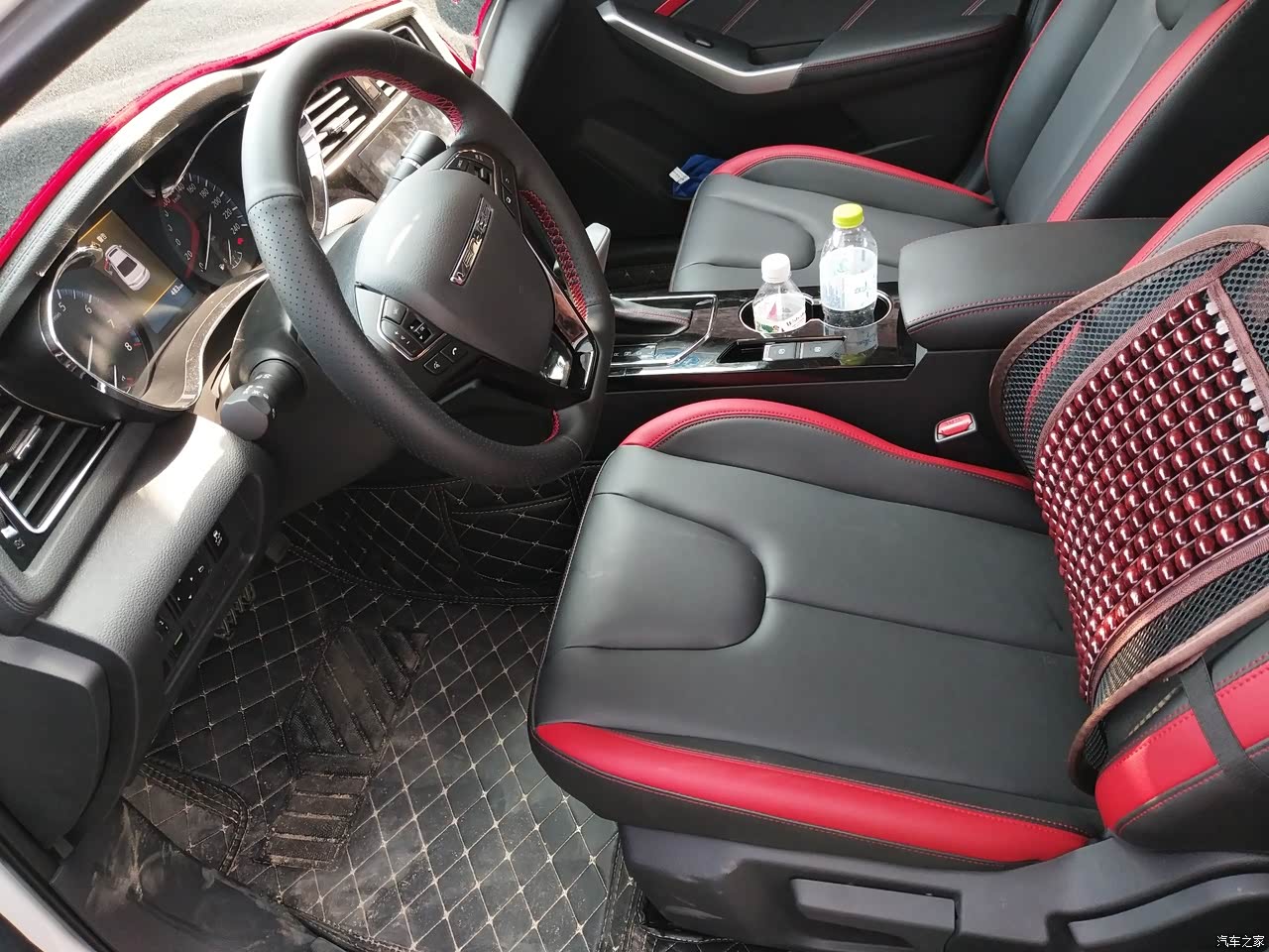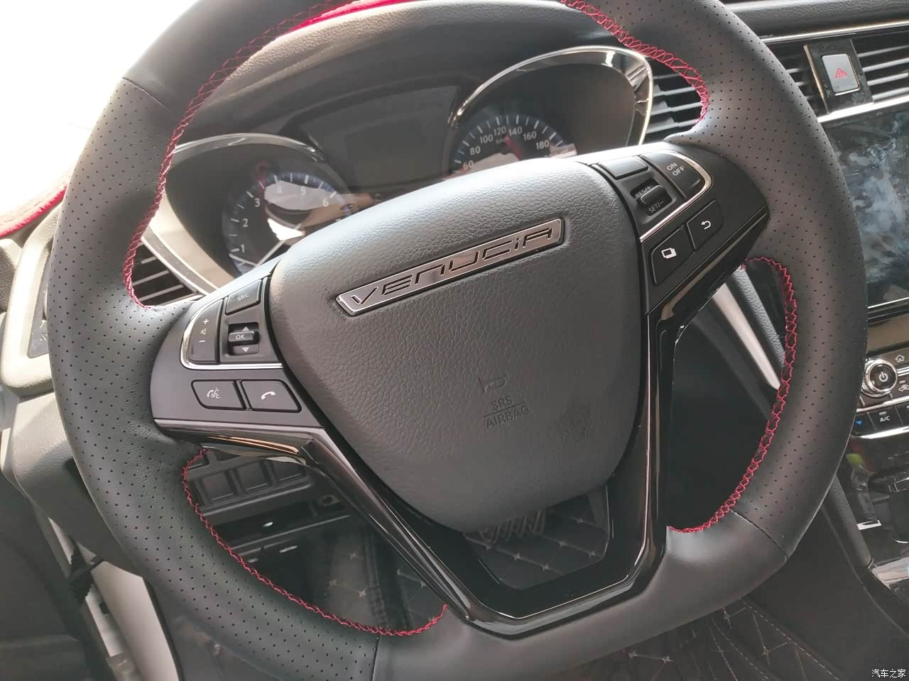 这款车内饰塑料感不是特别强,座椅都是仿皮的,有点遗憾的是方向盘采用的是软塑料,手感没有真皮套好,所以我就自己买了一个真皮的方向盘套自己缝上去了,效果很不错