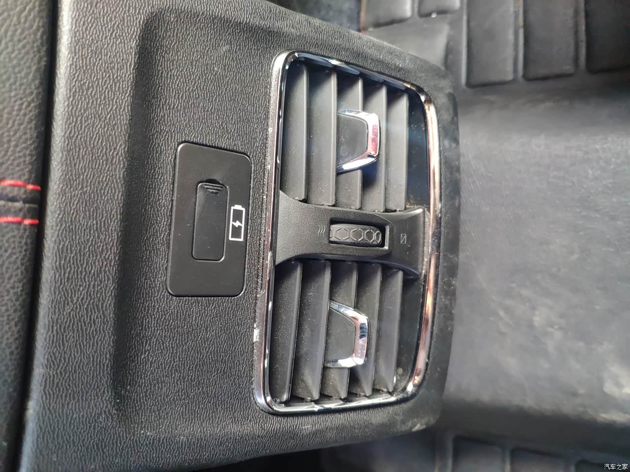 后座出风口很给力,这么大的空间,光有前边出风口肯定是不够用的,而且后排出风口风凉也是可以调节的,这个配置真的很贴心! 后出风口上边还有个USB接口,惊喜吧?