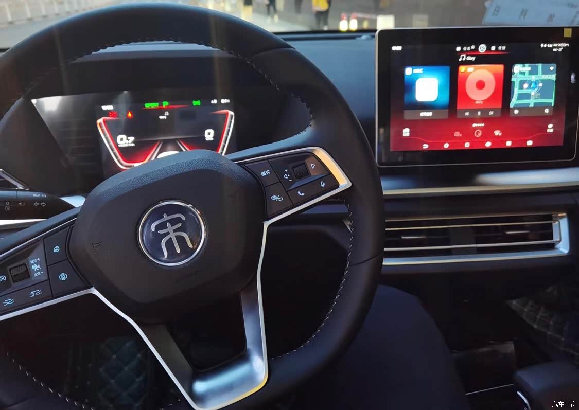 对于一台十万级的SUV,明显能看出比亚迪在内饰上也是下足了功夫,车内的搪塑软材质跟中控旋转屏,似乎已成为比亚迪近两年新车型的标配。座椅采用透气的黑色皮质座椅,很软,两侧的贴合性也很好,一坐就感觉很舒服,而且异味不大。头上的全景天窗,面积很大。阅读灯也采用了LED光源,而且全部用了触摸开关,很高档。车内还自带了无线充电功能,手机放上就能充电,满满的科技感很强大。整个中控台向驾驶位偏了7度,让驾驶员的驾驶感更棒了,传说中的“领航员副驾”也很有特点,总的来说,内饰太满意了,比亚迪可以说真的是硬生生做到了把一台国产十万级SUV和二十万的合资车齐平。