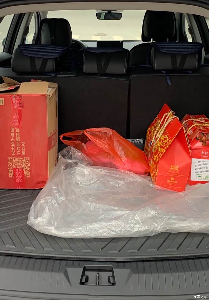 后备箱空间绝对够用,准备过中秋买的三大箱,塞进去,还有那么大空间。