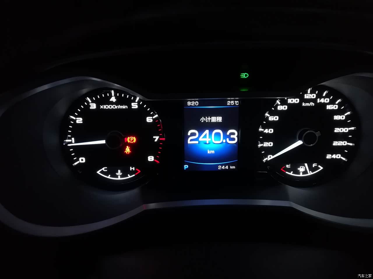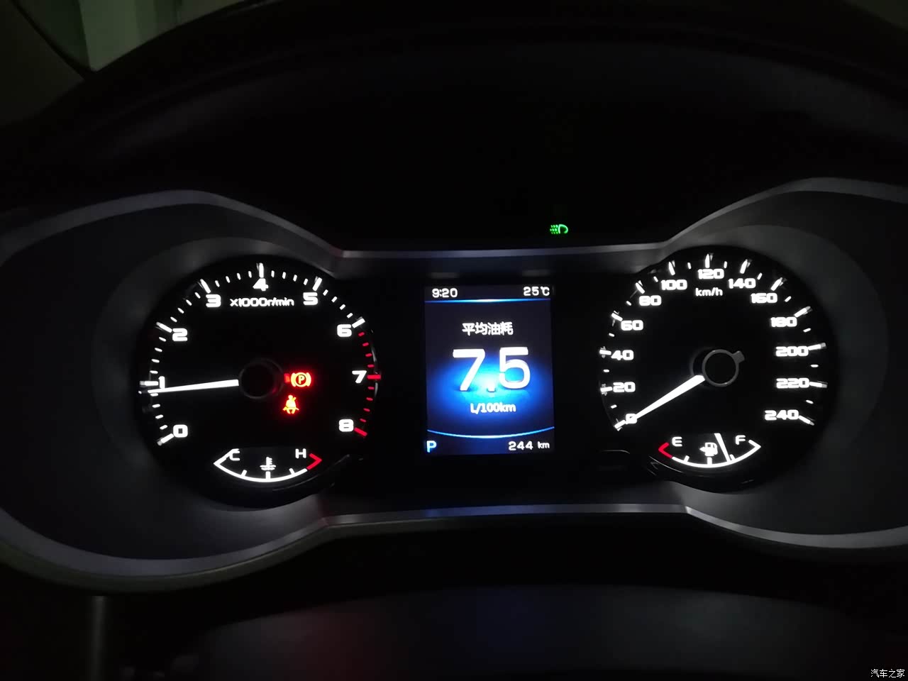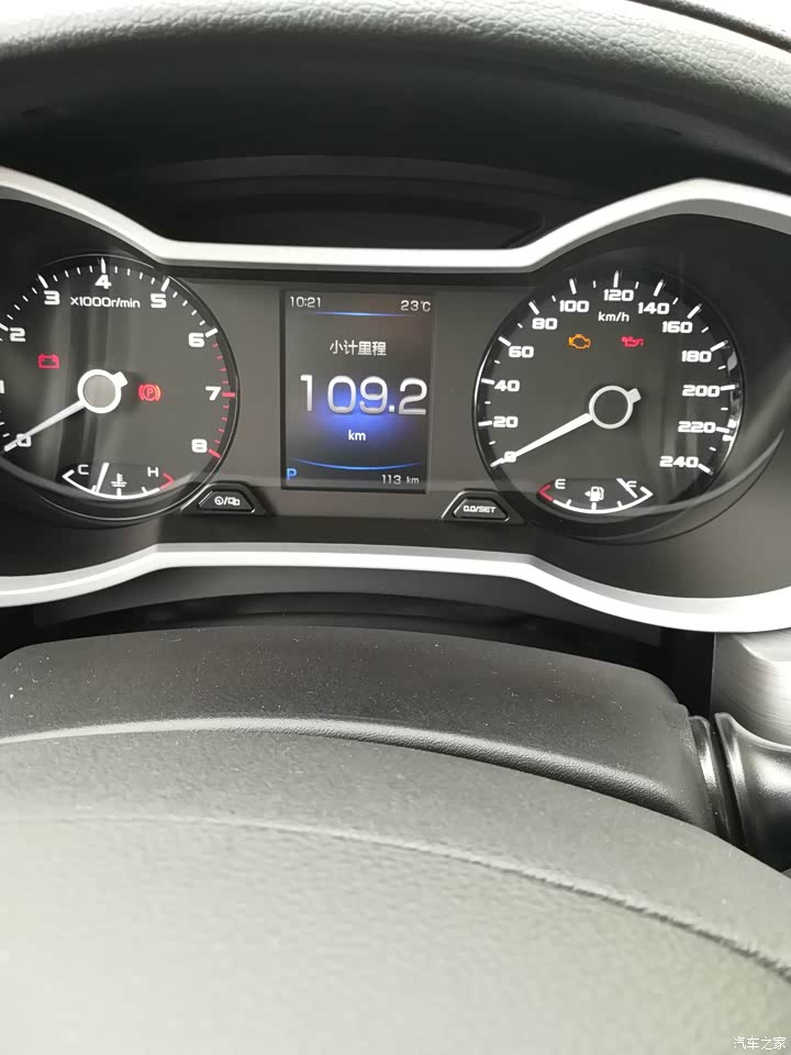 行驶100公里时油耗显示8.5左右,油表指针跑了8分之一。目前行驶两百多公里,仪表显示最低时显示7左右。等着看这箱有到底能跑多少公里。