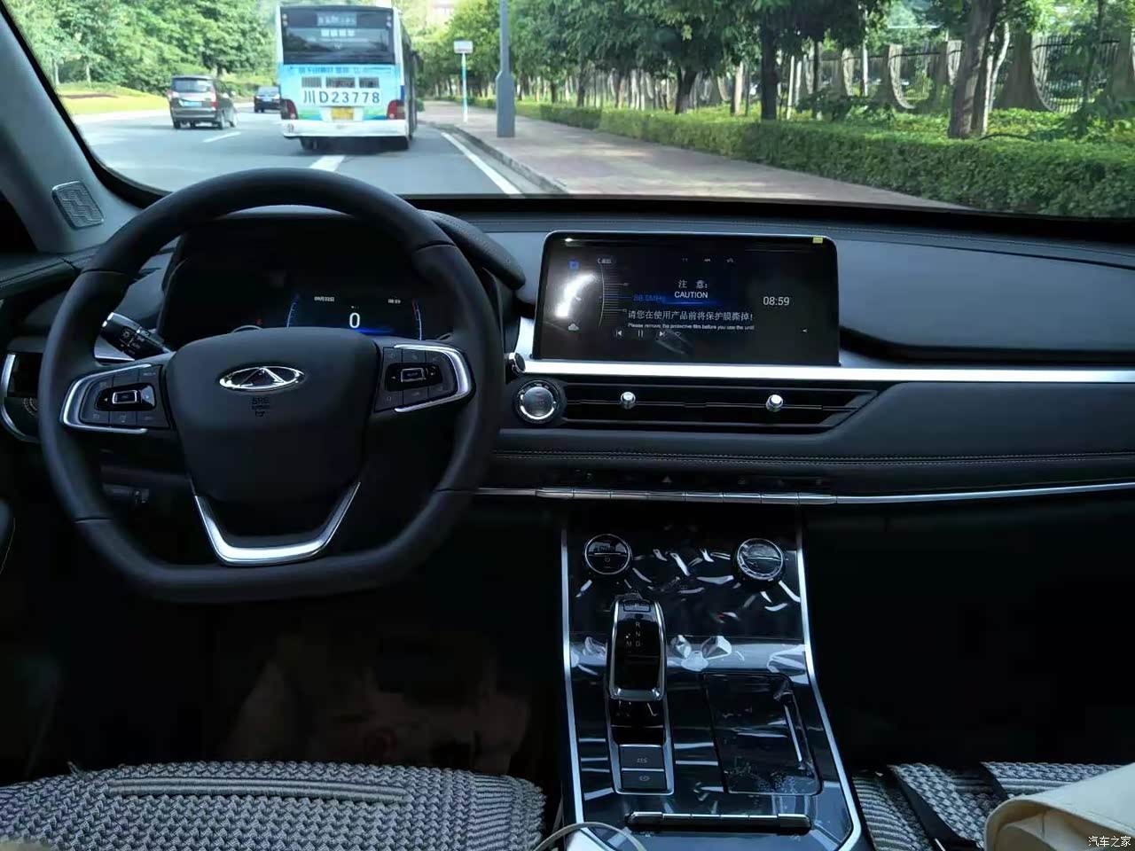 全新瑞虎八进步的比较多的一点整个内饰全部换了,然后中控看起来比较大气,特别是触摸屏,空调跟挡把那部分比较有科技感,然后内饰还是悬浮屏的设计比较新颖,这个是非常非常赞的一点
