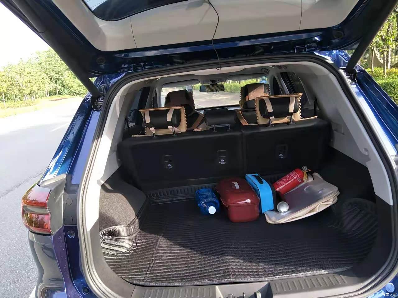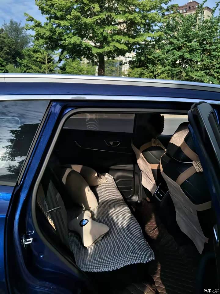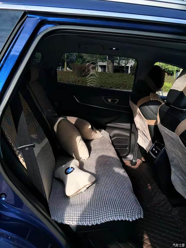 空间比较大,后排放倒之后,整个车纯平的状态,出去玩的时候可以临时休息一下,这个是比我比较看好的一点,平时坐五个人,后排的人个子小一点,可以翘一个二郎腿