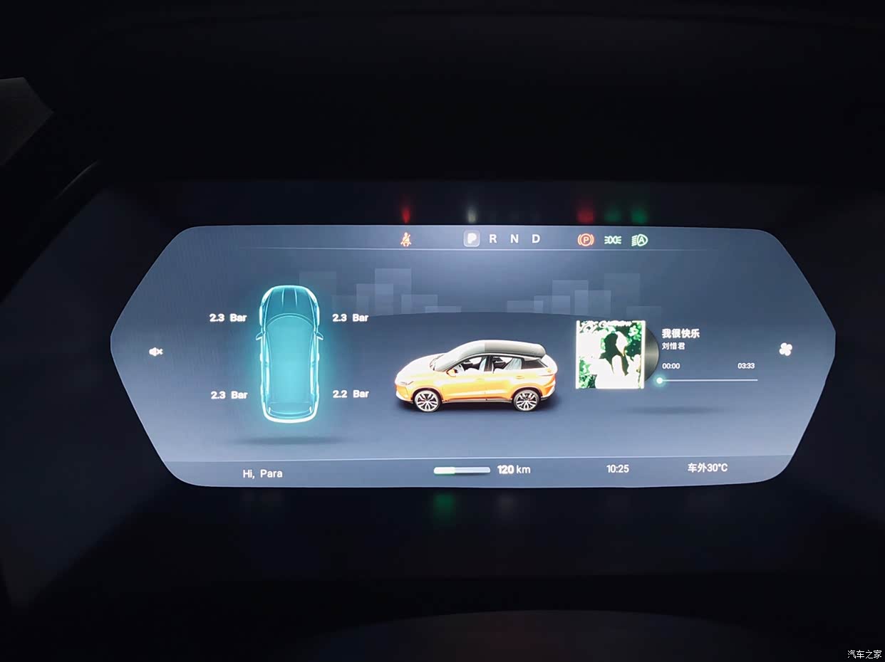 秀一下仪表,胎压监测。行驶中还有道路画面安全预警,比较用心。