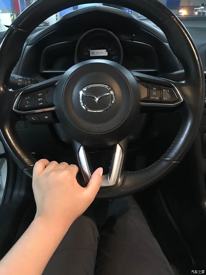 马自达人马一体的设计理念,坐在驾驶座上,整车的包裹设计很舒适,坐在里面不会很压抑,这个车是真皮座椅,原车的座椅坐着还真是挺舒适的,都说悬挂偏硬,但是在市区开根本感受不到这一点。