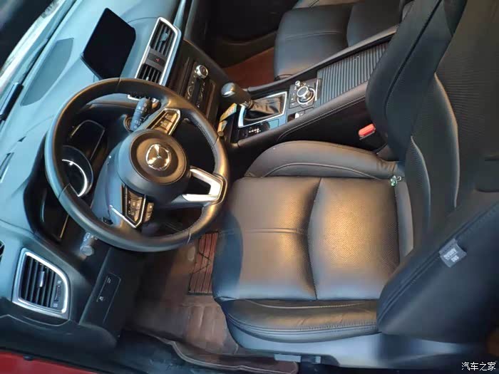 内饰算是中规中矩吧,说不上惊艳,但是也说不上难看,只是符合大部分人使用车的基本需求吧!对称的主副驾驶操作设计,最喜欢的就是档把处盲操作大屏了,真的大大提高了安全性,而且小按钮的旋转性阻尼行非常好,内饰座椅也是真皮打孔的夏天会透气,冬天也不会太凉,总体来说马自达还是挺良心的!