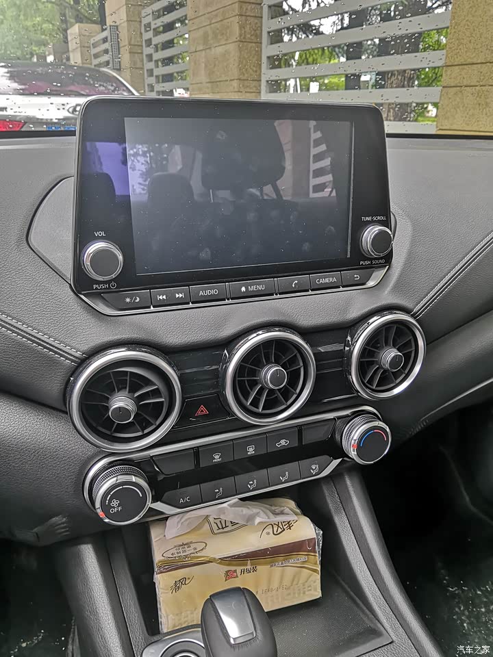 内饰唯一还是要吐槽的没有电子手刹,图片标注出来的这个位置,空着也不能放啥东西啊,就不能配个吗,设计师啊。中控屏设计的还不错,三炮筒人性化,360度°吹风,这个可以给个赞,整体内饰还算欢喜