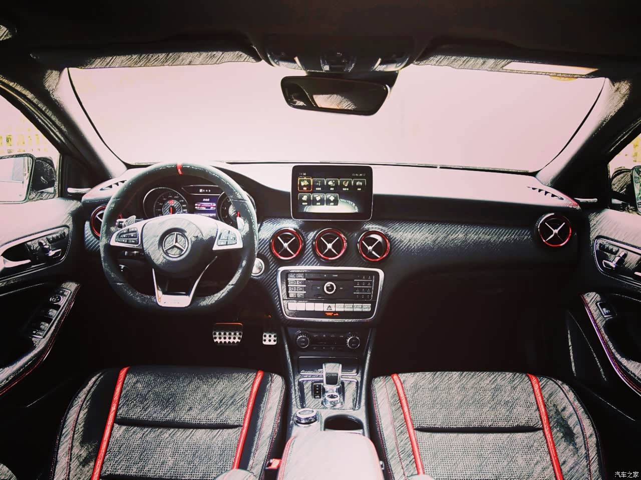 内饰红色配黑色 红色的安全带很不错 中控那块忘了什么材质 刚开始还以为是碳纤维