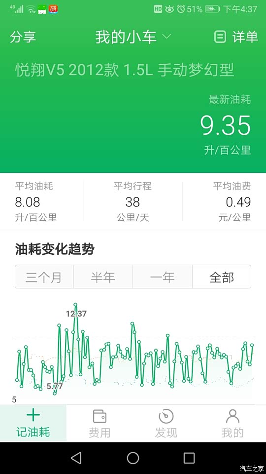 不低,但也不至于高的离谱,长期油耗在8L出头,在国产里面算中等吧。不知道为什么,怠速,低速油耗高,换了氧传感器,节气门也常洗,没什么改观。城市里开,能开到10L出头,应该还是太堵车了,油耗不高点对不起重庆全国第一堵城的称号(天天过嘉华,懂得自然懂)。开国道最低能干到5L出头,高速一箱油干到底能跑600才亮灯,亮灯还能跑100出头,自驾游时倒是省心。